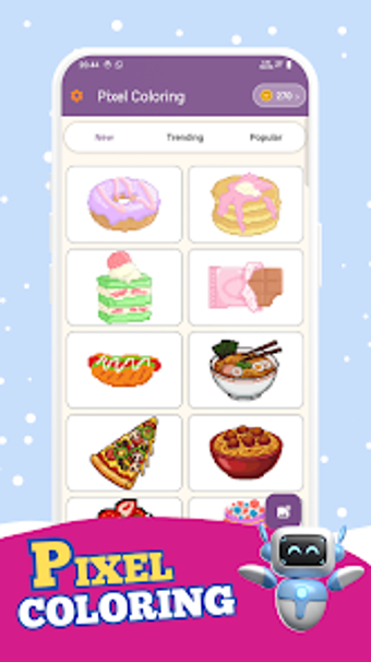 游戏玩法简单,只需轻轻点击即可根据数字填充颜色。用户可以离线享受该应用,确保随时随地的可访问性。凭借自动保存进度、从动物到食物的多样类别以及提供奖励的特别活动等功能,Zen Pixel 促进创造力和专注,同时提供有趣和引人入胜的体验。